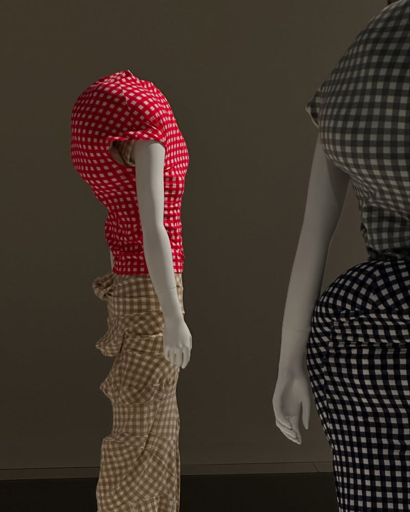This shift, presented through Kawakubo’s lens, liberated fashion audiences from conformity. When something is revolutionary, it inevitably provokes divided opinions. Only with time and perspective can its value be fully appreciated. Today, Body Meets Dress, Dress Meets Body occupies a pedestal in fashion pop culture history, yet at the time it faced mixed critical and media reception. Near the end of the millennium, the press hailed the collection – also nicknamed the lumps and bumps collection – as innovative, interpreting it as a form of protest against established aesthetic norms, particularly through the system of padding that referenced bodies outside socially accepted standards. Others in the fashion industry compared the padding to tumors, possibly giving rise to the nickname lumps and bumps, while some even dubbed it Quasimodo or labeled it the ugliest collection of the year. The widespread use of gingham in the collection evoked associations with the traditional homemaker’s uniform and an almost infantilized femininity. Others, however, appreciated it – MoMu Antwerp notes that choreographer Merce Cunningham, who incorporated the collection into his iconic production Scenario, simply remarked: “The lumps are familiar shapes we see every day: a bike messenger with a bag over the shoulder, a tourist with a fanny pack, a baby in a mother’s arms.” And indeed, there is nothing unusual about that, is there? The collection, full of lumps and bumps, sparked controversy, which only reinforced Kawakubo’s aim to disrupt what was considered normal. She described the collection as an exercise in rethinking the human body: "You can tell if it’s a good collection if people are afraid of it. In ten years, everyone will love it." And exactly that happened with Body Meets Dress, Dress Meets Body.