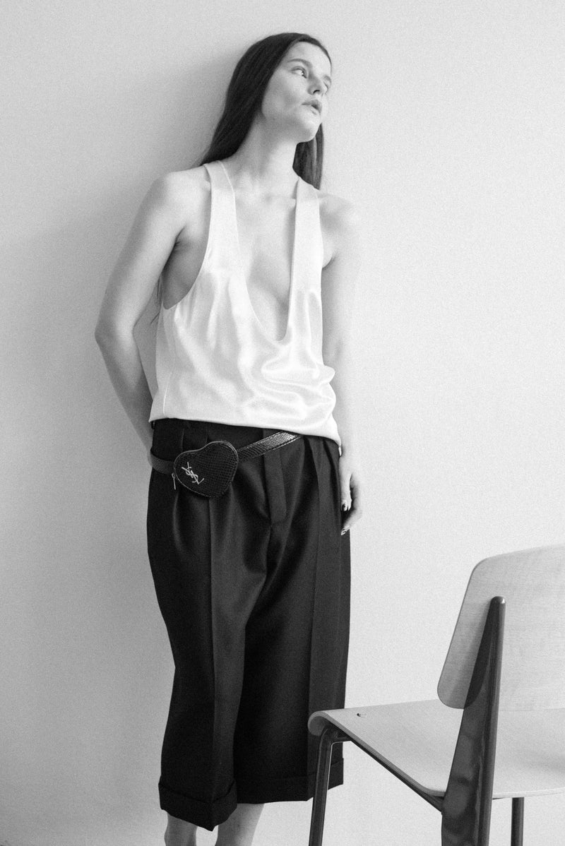 And it is in this quiet, understated power that the magic of the white tank top lies. It allows room for personal interpretation and experimentation, while simultaneously providing a kind of stylistic framework. It is a tool for precise, monochromatic play with proportions and textures. Perhaps this is why fashion keeps returning to it. Unassuming, yet indispensable. Ordinary, yet eternal. This is precisely why it is an essential piece of a capsule wardrobe. It connects all the pieces together. In other words: if an outfit holds up with a white tank, it holds up completely.